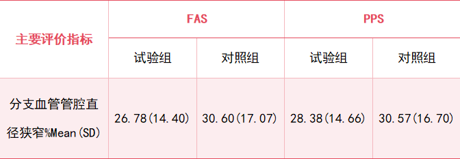 The target lesion branch vessel diameter stenosis at 9 months was 28.38% ± 14.66% (test group) compared to 30.57% ± 16.70% (control group), with 95% CI confirming non-inferiority.